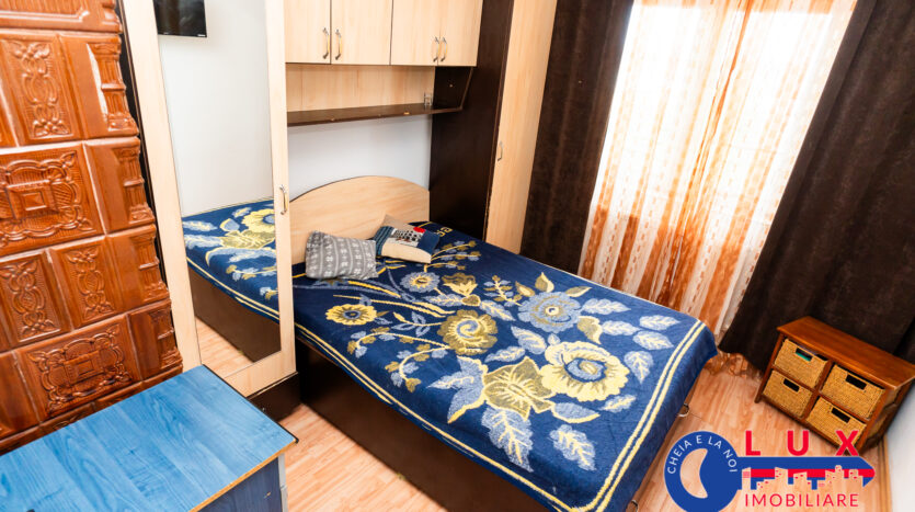 Agentia Lux Imobiliare va ofera spre VANZARE un apartament cu 2 camere, amplasat la etajul 4 (cu pod) pe strada Eternitatii, la E-uri. Un avantaj al zonei este ca in apropiere găsiți Piata Neptun, supermarket Profi, mijloace de transport în comun, stație de taxi, Scoala Gimnaziala “Ion Luca Caragiale”, gradinita, magazine, farmacii, etc.