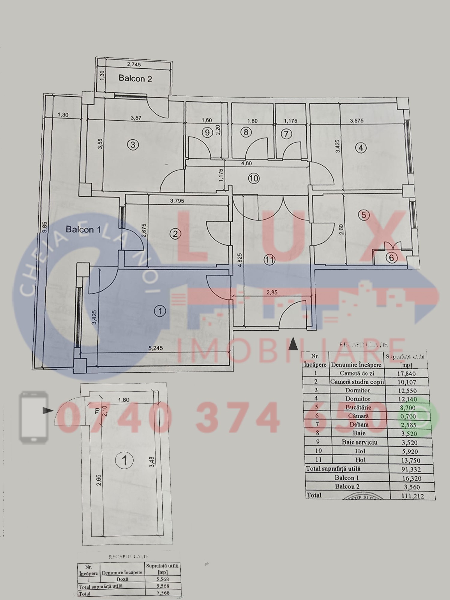 + Boxă: 5,6 mp
